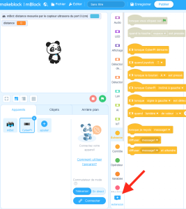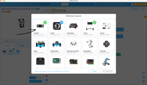 sélectionner Mbot2 et les modules ( ultra son, capteur Quad RGB, Affichage+ )