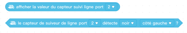 Mblock met à disposition du programmeur deux instructions qui permettent de lire la valeur renvoyée par le capteur suiveur de ligne Il s'agit des blocs :
