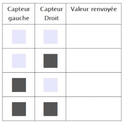 Faire un tableau avec une représentation des capteurs et la valeur retournée