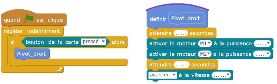 “Pivot_droit” est un sous programme que vous devez créer dans “Blocs & variables” ( créer un bloc )
