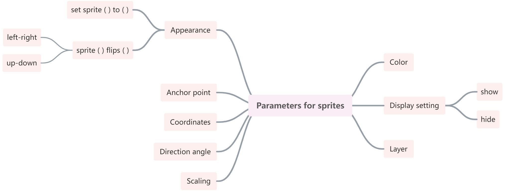 You can modify the parameters for a sprite through blocks or APIs. The following figure shows the currently available parameters for sprites.