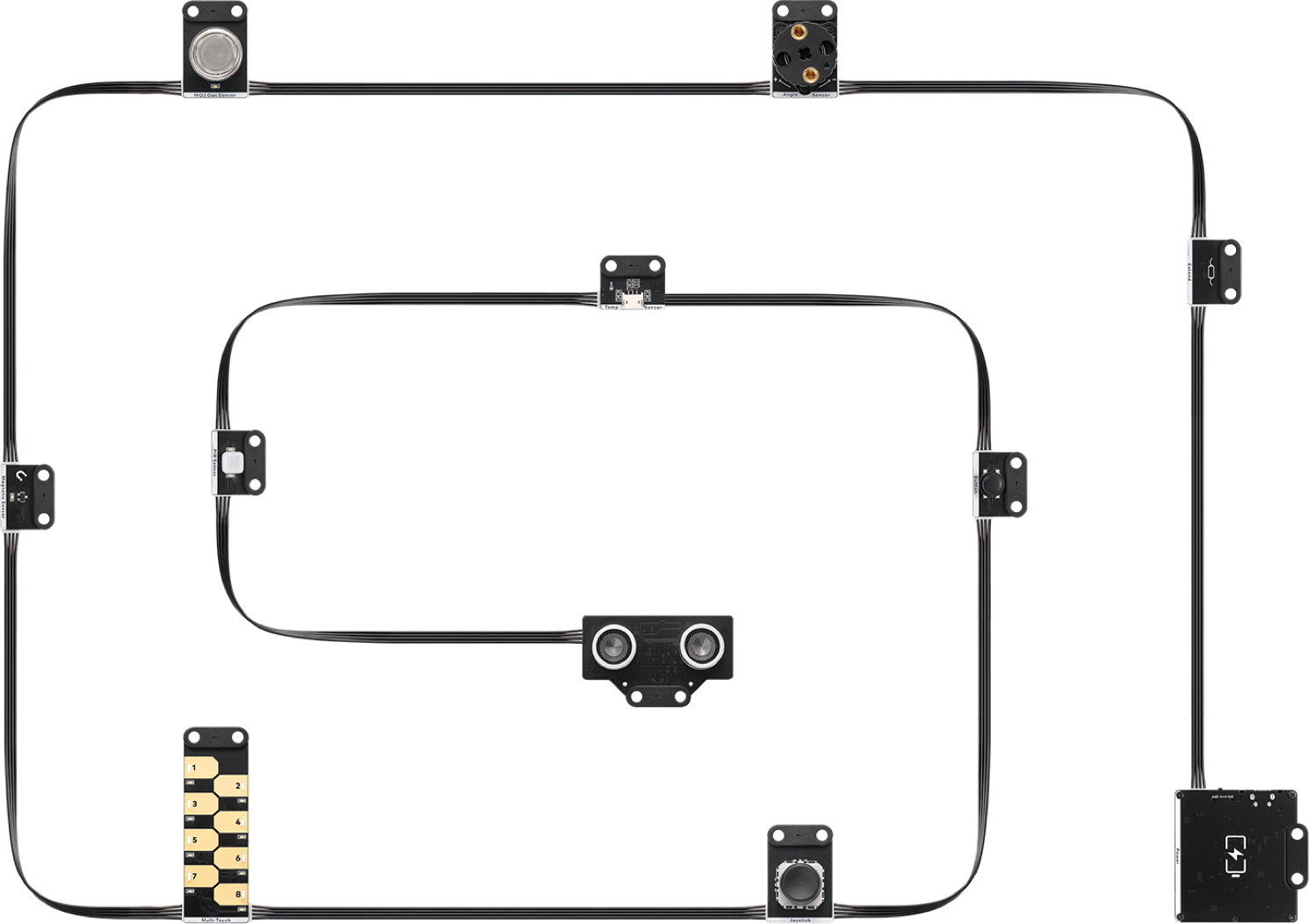 Connect the mBuild modules to a main control board, such as Halocode or CyberPi, through 4-pin cables and then connect the main control board to a computer.